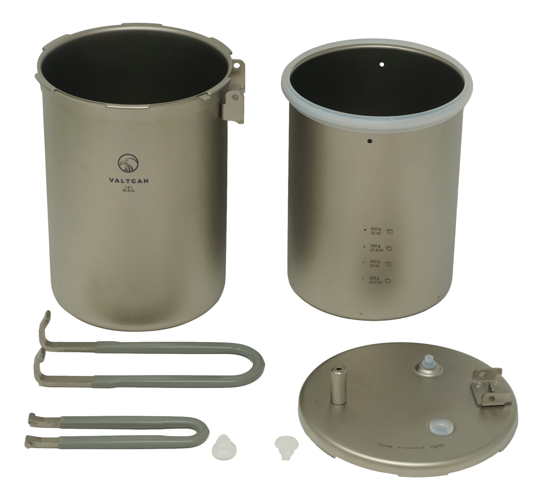 - 100% Titanium camping rice cooker pot 1800 ml with pressure cooking system. Simple rice cooking guide - use marked rice guide in inner pot to fill with recommended water. Example: fill water up to the first line with 300g of rice.
