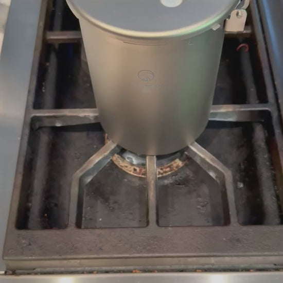Titanium rice cooker pressure pot is light and strong, corrosion-resistant and lasts for years. Designed with constant pressure cooker for meats, soups, rice, pasta, veggies, etc. Cook your meals in high altitudes and fast with constant pressure of 3psi and pressure relief safety valve. Perfect for travel, camping, offices, or hiking trips. Rounded bottom edges make cleaning easy and improves heating efficiency. Handles fold away for compact storage in mesh bag or cupboard. Titanium leaves no metallic smell or taste. Please wash with warm soapy water before using. If using dishwasher, remove handles before placing into washer.
