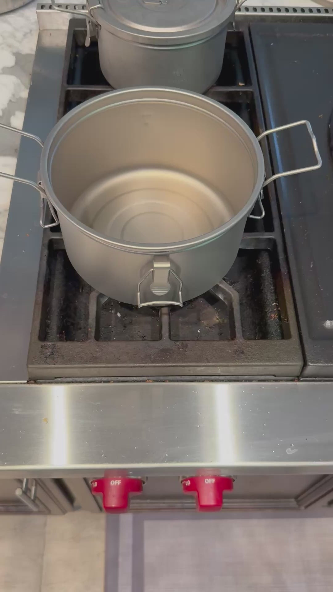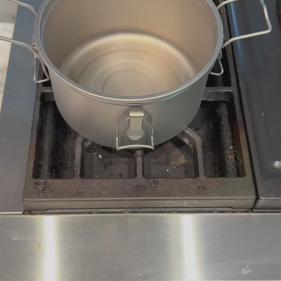 - Our largest capcaity titanium pot offering. 100% Titanium camping rice cooker pot 3200 ml with Lid and mesh bag. Simple rice cooking - use 1-1 ratio of rice to water and Fill bottom of pot with water first with 400ml of water.