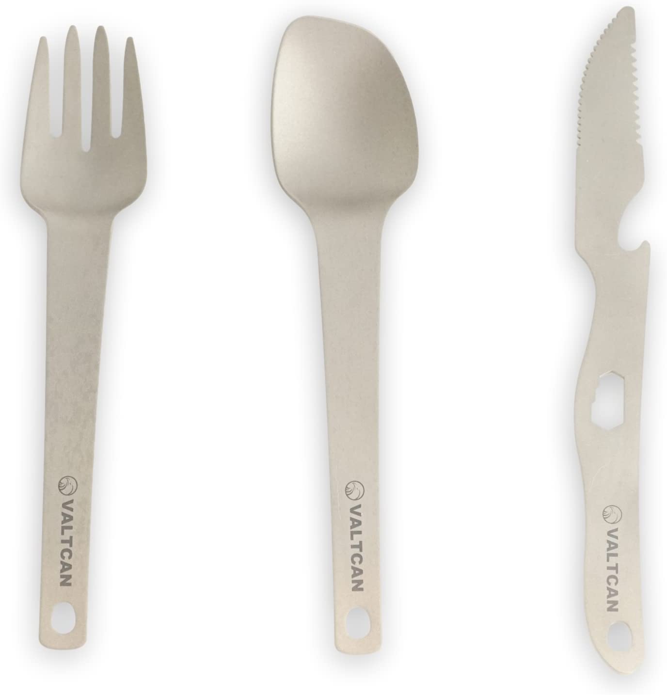 Valtcan Titanium 3 Piece Utensil Fork Spoon Knife Ultra Compact Carry Design System 63g